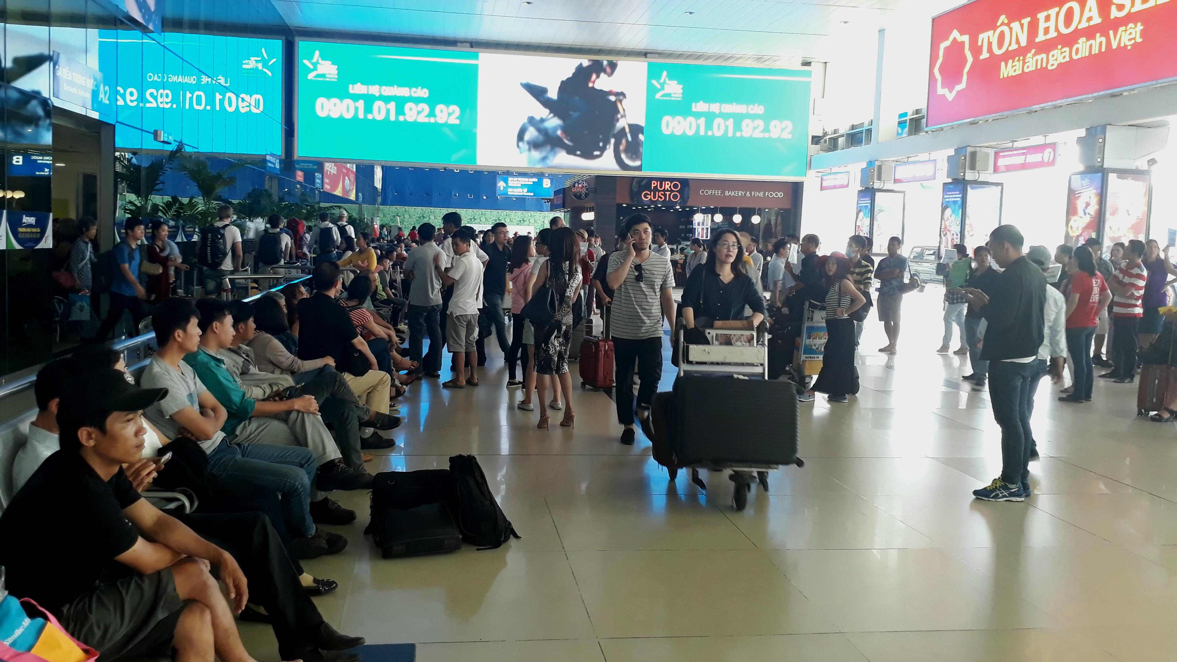 Tại các quầy check-in khá đông hành khách đứng xếp hàng chờ làm thủ tục nhưng vẫn không xảy ra tình trạng quá tải. Tuy nhiên, nhân viên hàng không liên tục thông báo các chuyến bay cận giờ để ưu tiên làm thủ tục trước.